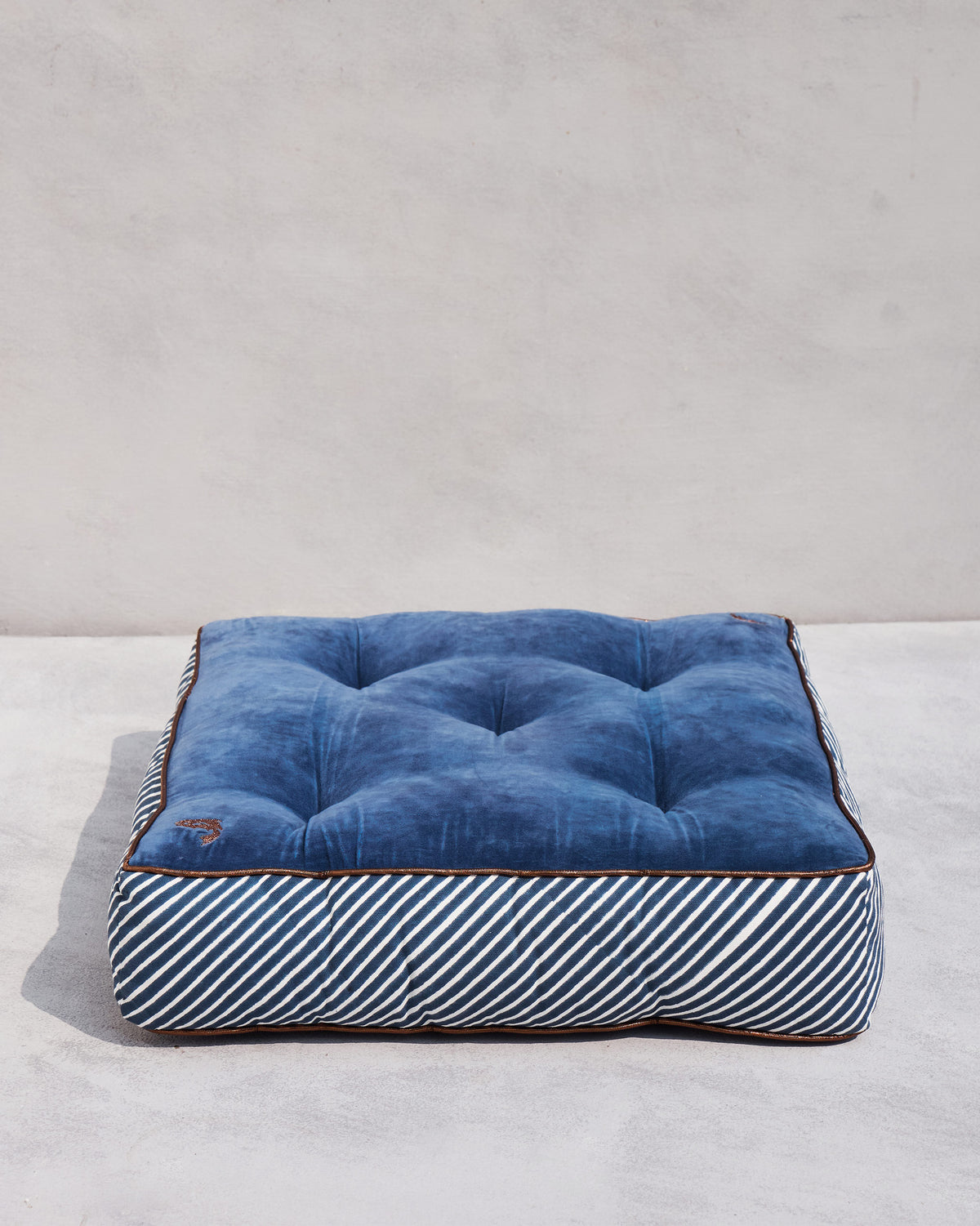 - A sumptuous floor cushion, plush with a striped edged in in deep blue, the Pacific Cushion brings a cloud-like softness to spaces. Spot an embroidered motif of a leaping copper salmon on the side.