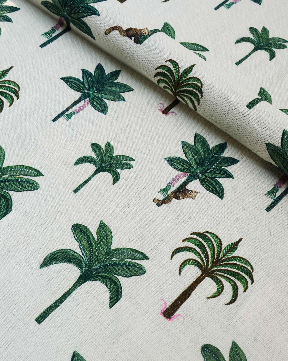 - The Palms fabric features Nicobar's signature palm motifs inspired by our travels in a bright palette of green and white. Adding a balance of colour and pattern to spaces, the design is intended to set a foundation for the rest of your interior setting.
