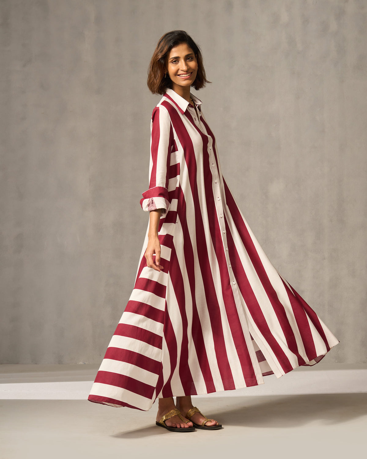 Pattaya Shirt Dress - Red & Ivory Stripes