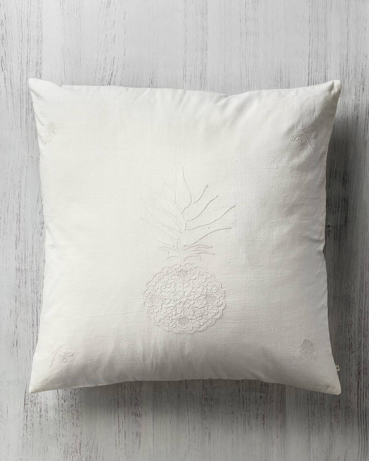 - Printed on grey cotton voile, this deliciously soft cushion cover comes printed with pineapples and dragonflies as an ode to the tropics