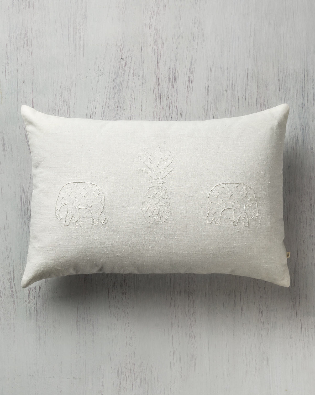 - Printed on grey cotton voile, this deliciously soft cushion cover comes printed with elephants and a pineapple as an ode to the tropics