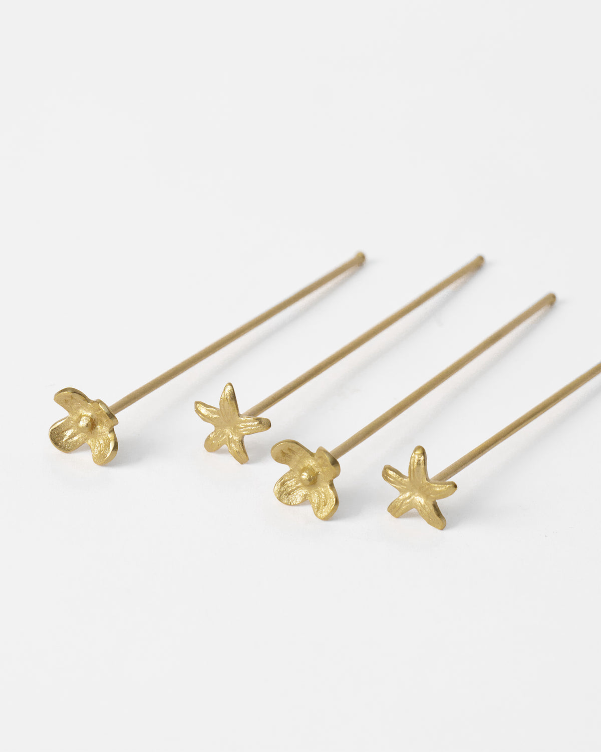 - Crafted in brass with a beautiful matte and gold finish, these Poppy Stirrers add a touch of elegance and whimsy to your artisanal creations.