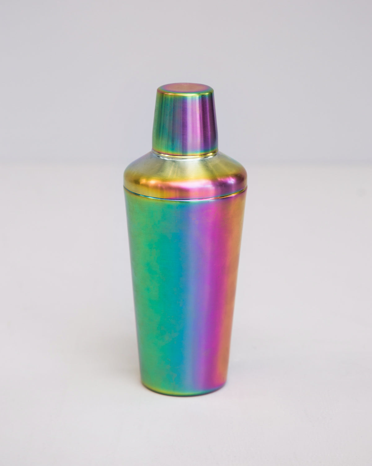 • A cocktail shaker is a must for any home bar and ours comes in stainless steel with a matte rainbow finish