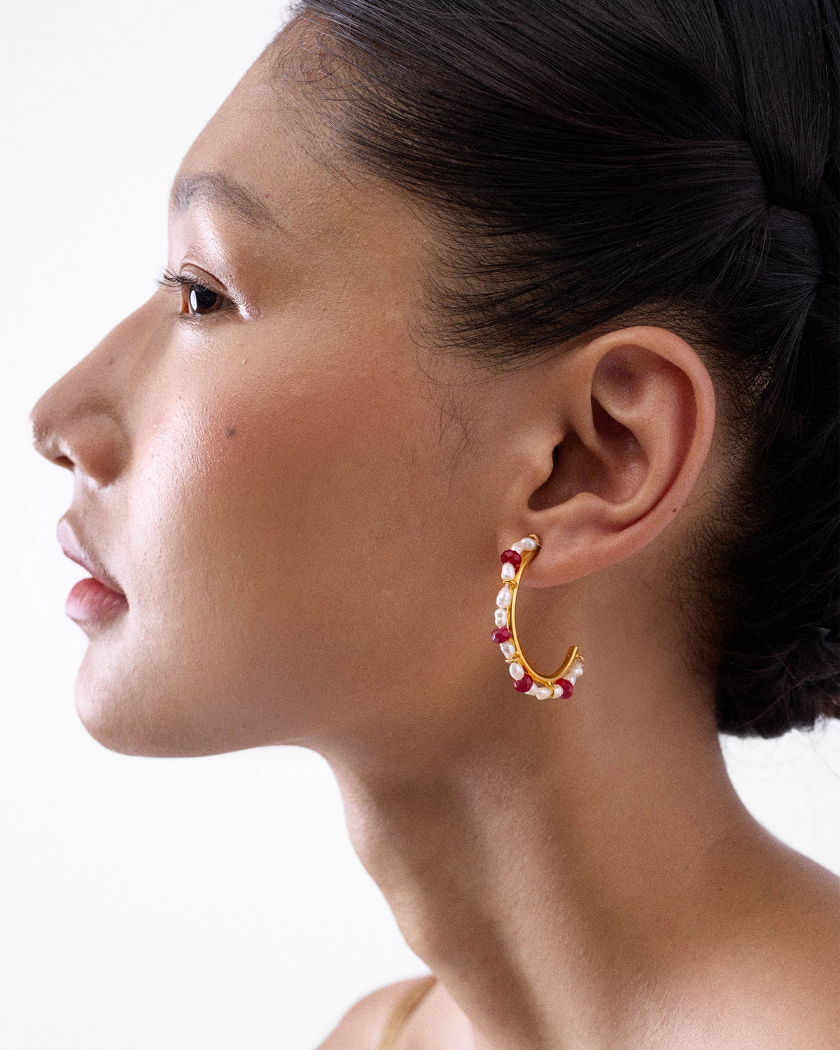 - Delicately sized and elegantly designed, the small Raja Balis are adorned with shimmering garnet and pearls.