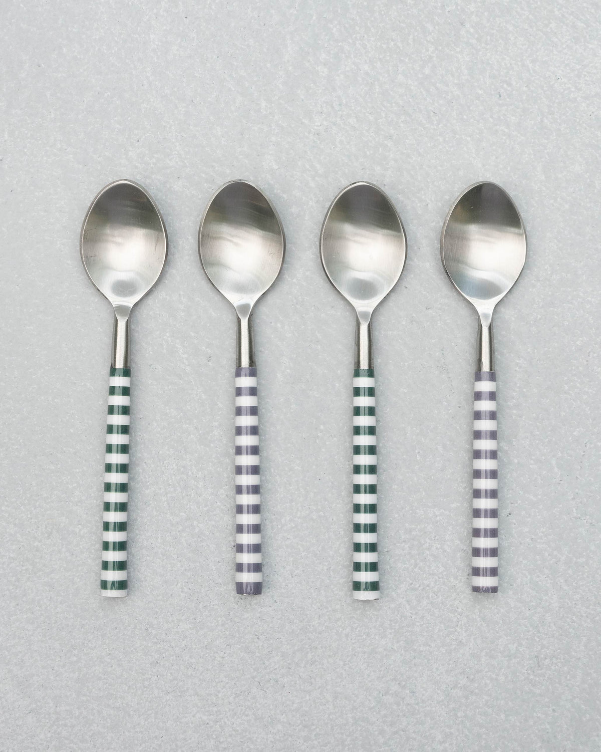- The charcoal and green striped dessert spoons are the perfect accompaniments to enjoy your sweet treats.