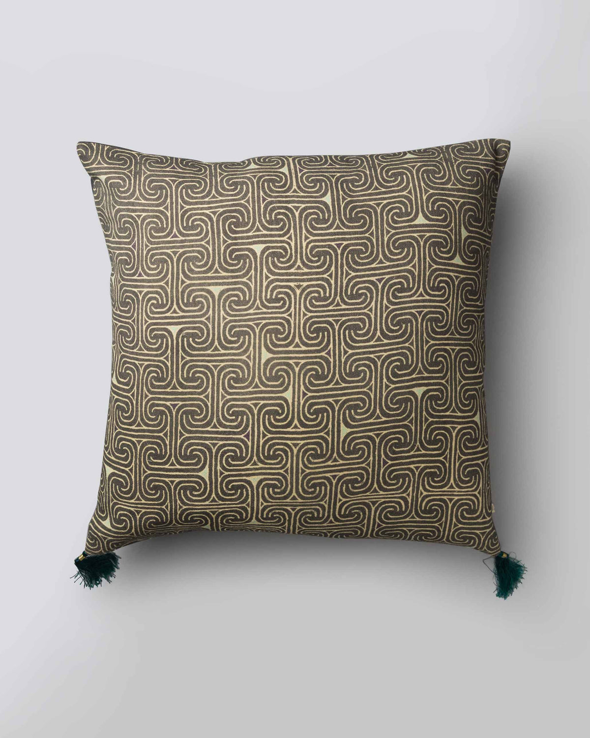 - Inspired by Chinese lattice work, this piece comes dipped in charcoal in a textured cotton