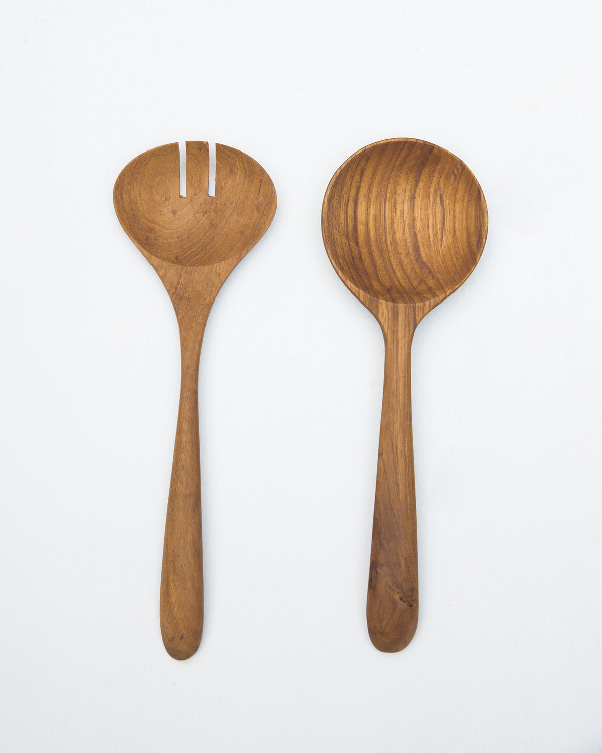 - Fashioned in wood from the roots of the teak tree, these servers will complement our Serai Salad Bowl