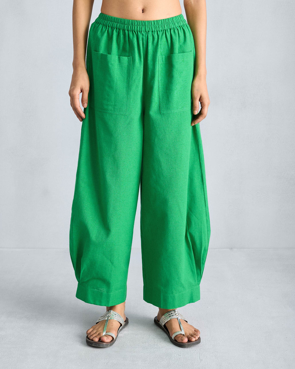 - Form meets function, these green pants feature two convenient patch pockets in the front, providing both practicality and a touch of flair.