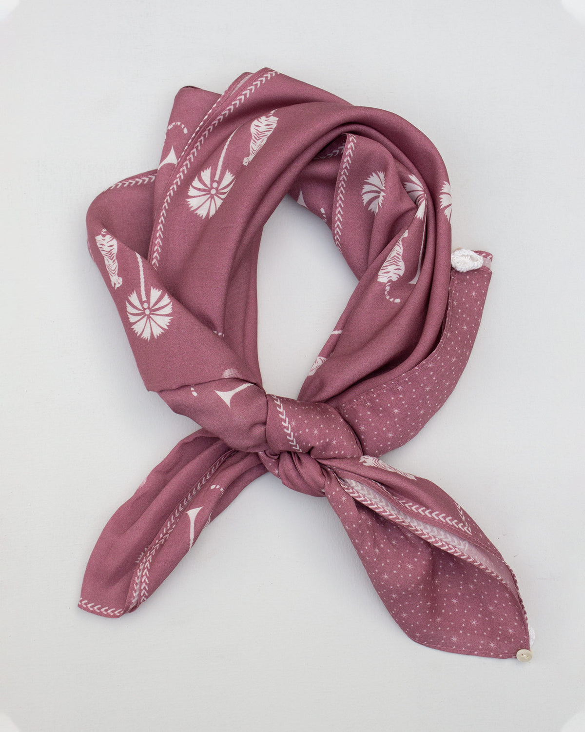 - Bring a bit of nature into your wardrobe with this scarf featuring tigers lounging amidst lush palm trees.