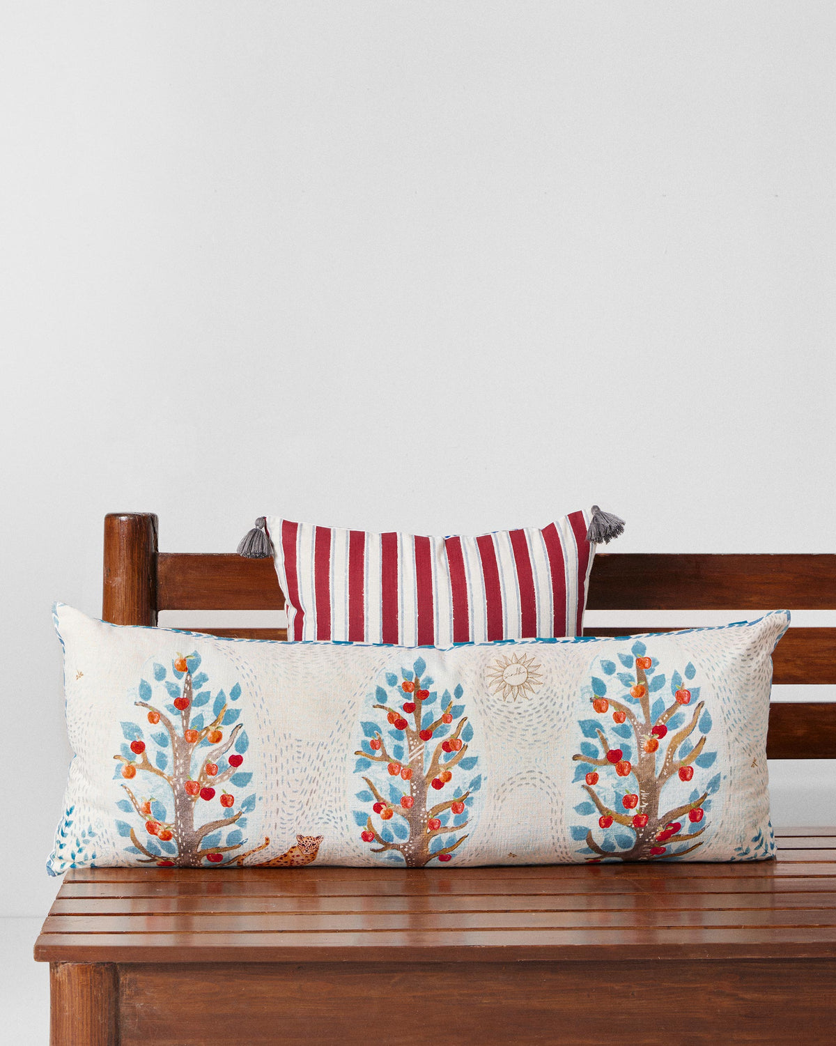 - Inspired by the rivers of India, which connect people, cities, and rituals, we turn inward to where it all began. The Sindhu Lumbar Cushion Cover features leopards sitting merrily under apple trees,
