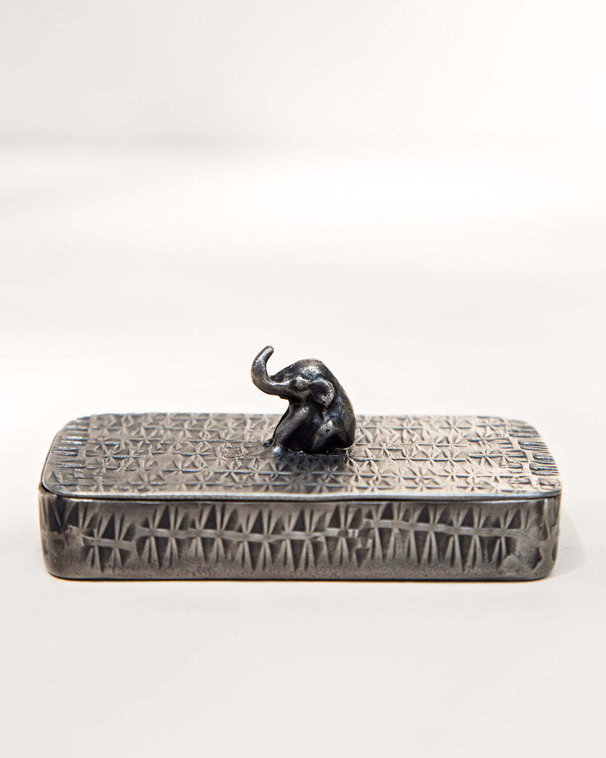 - Store your prized tidbits in our matte nickelled box shaped like a sitting elephant