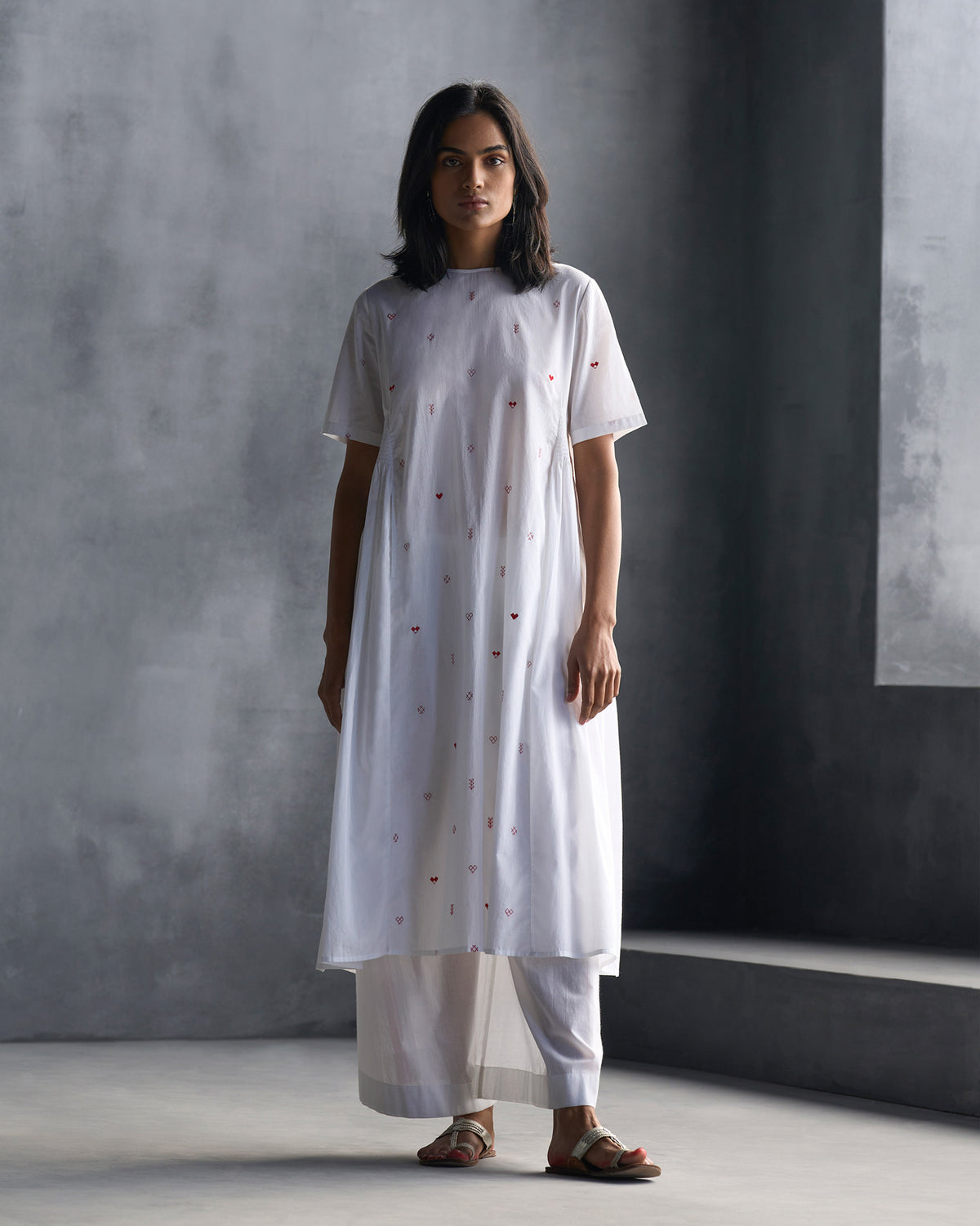 Smocked Side Kurta - White
