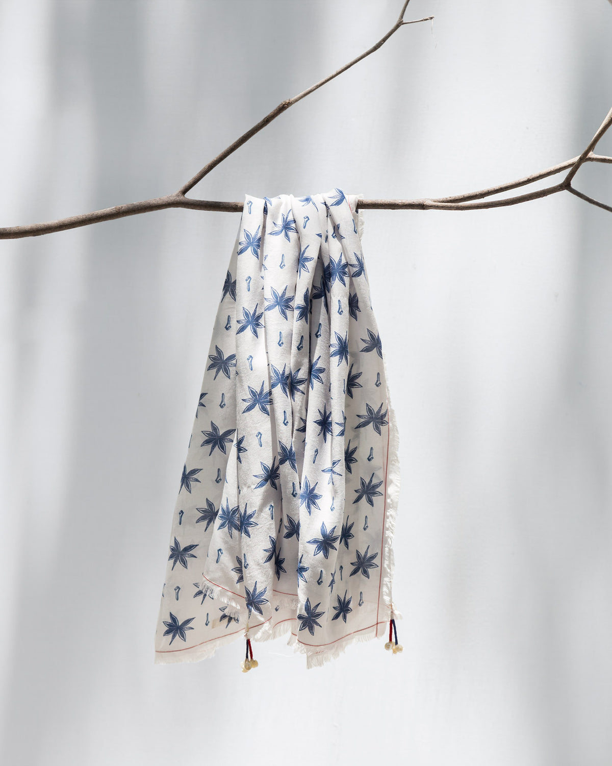 - This square scarf is peppered with star anise and pairs well with bold outfits