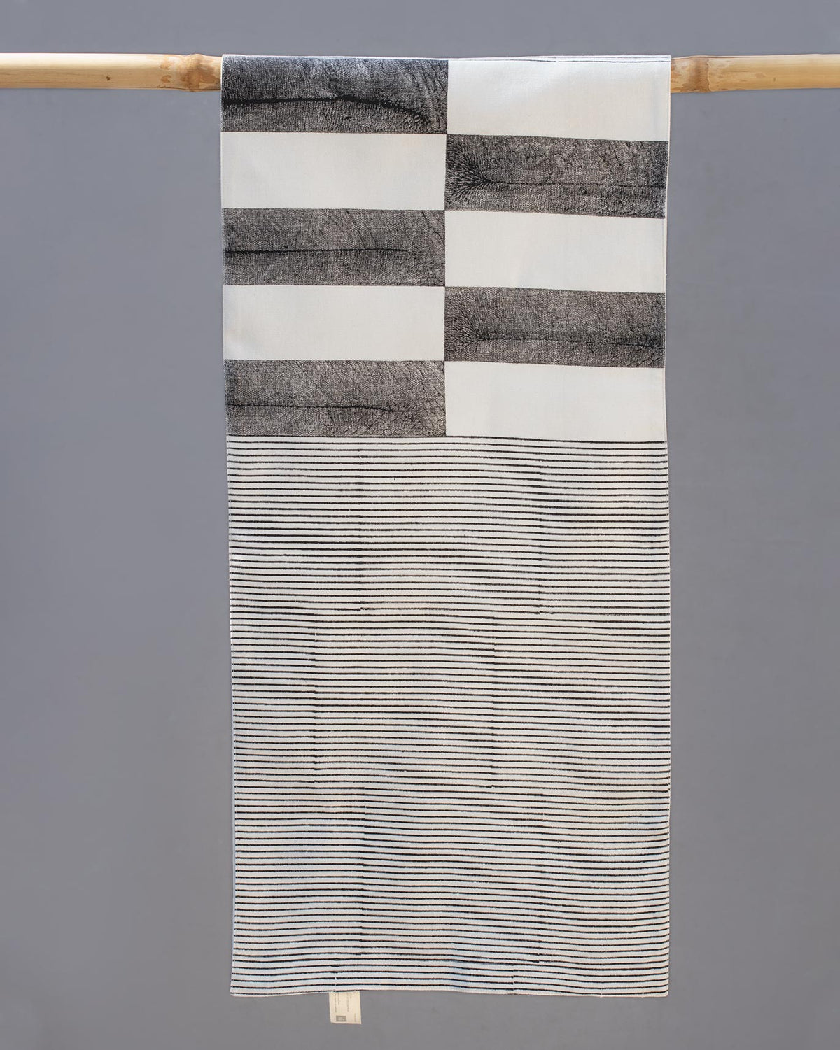 - Printed with graphic white and black stripes on sturdy cotton canvas