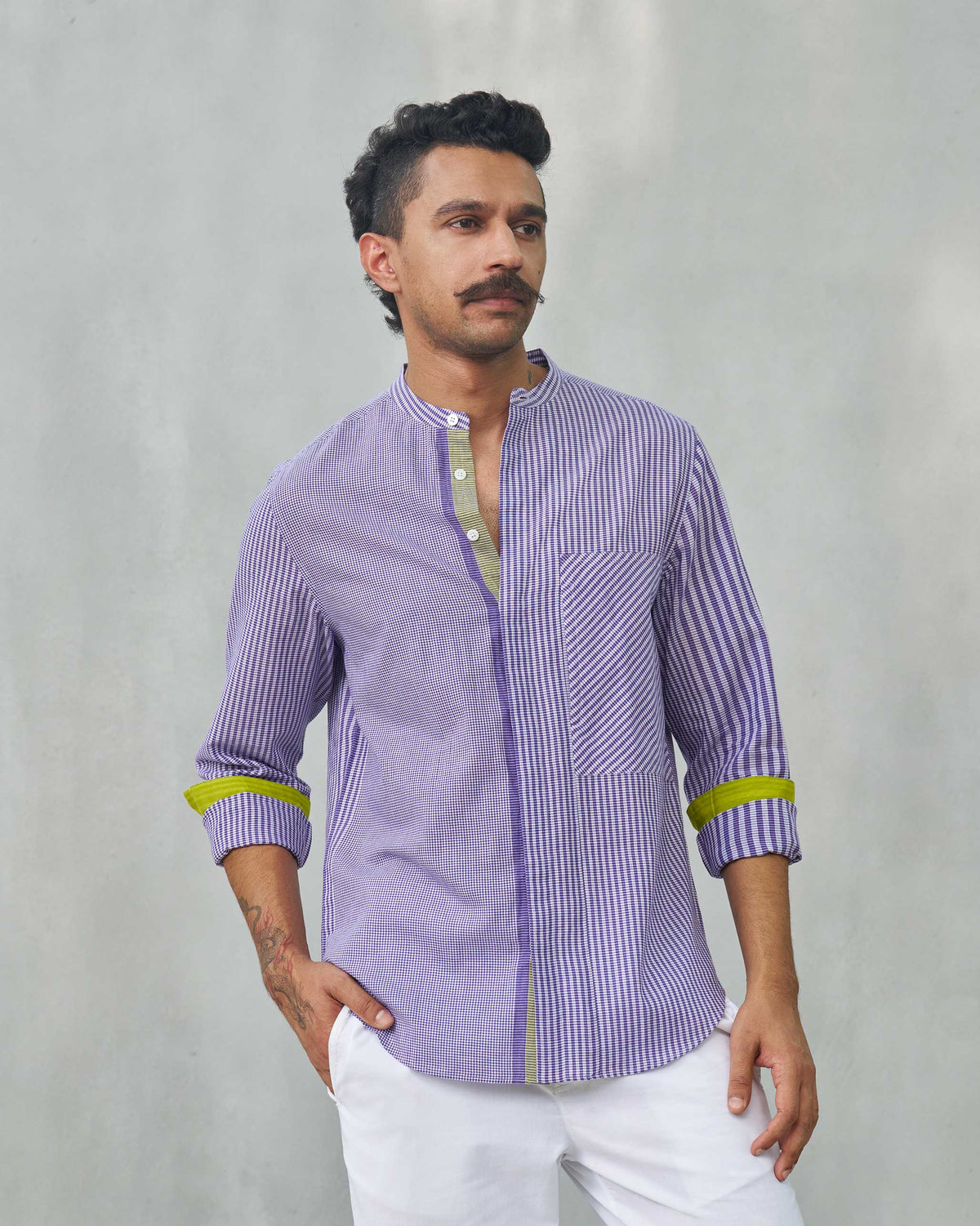 - Add a touch of fun and personality to your summer wardrobe with the Summer Fridays Pocket Shirt in purple and white checks.
