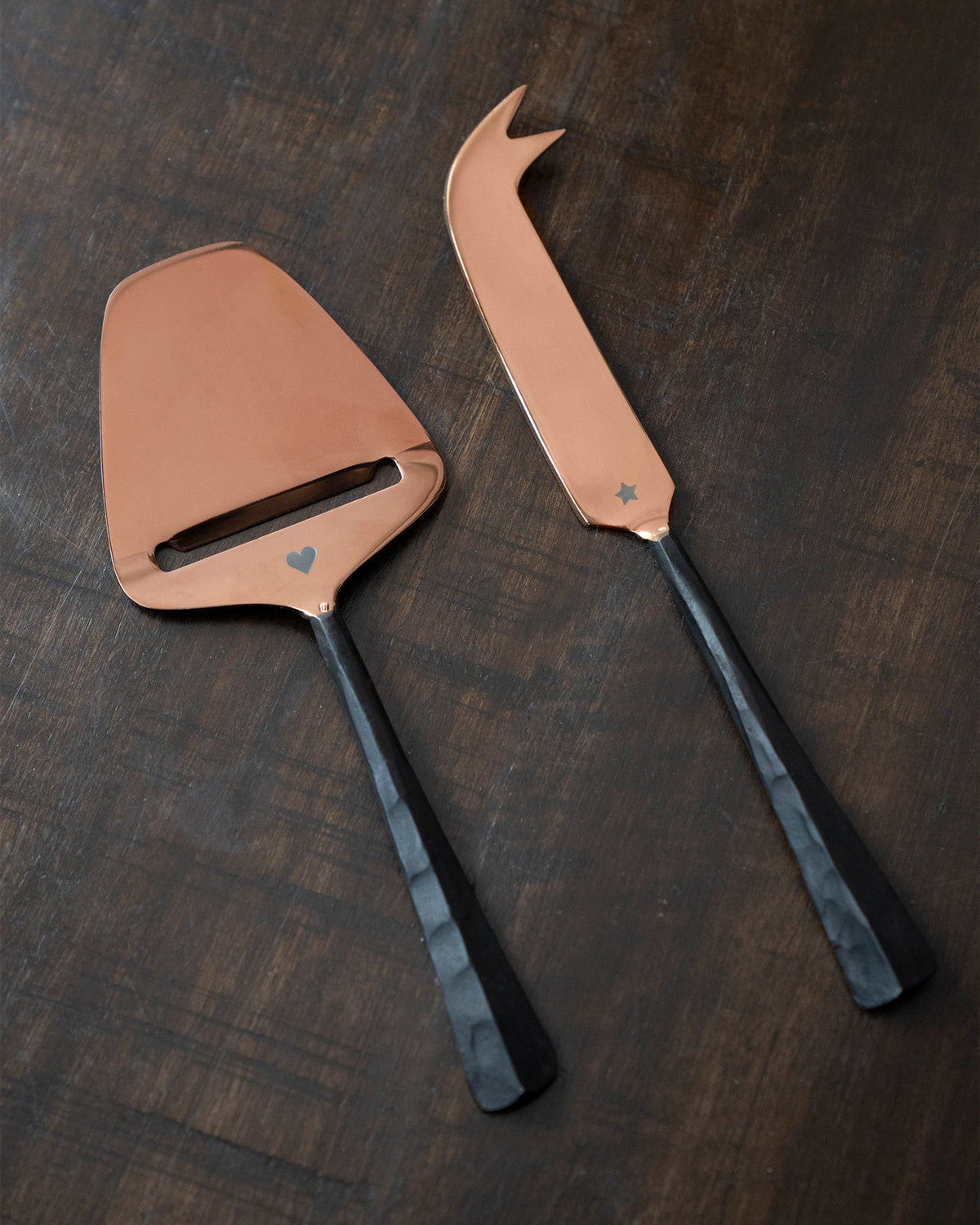- These knives, crafted beautifully in stainless steel and finished it stunning rose gold are perfect for carving up our favourite Camembert