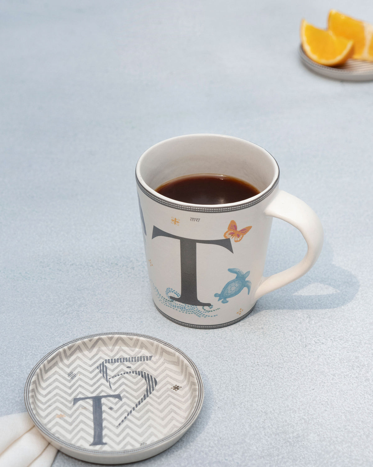 - The T Alphabet Set comes with our beloved Alphabet mug and Akshar Coaster; personalised and thoughtful, these are a real love letter to India's regional dialect and scripts