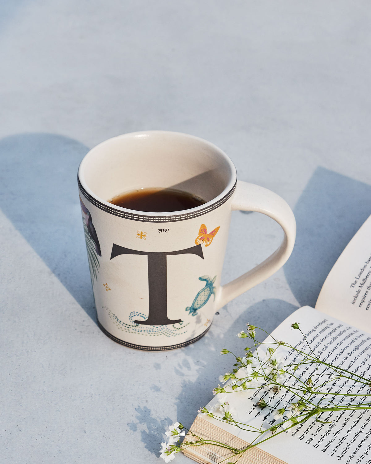 • Our much-loved alphabet mugs return; that familiar form in smooth stoneware, but with fresh designs that are a real love letter to India's regional dialect and scripts