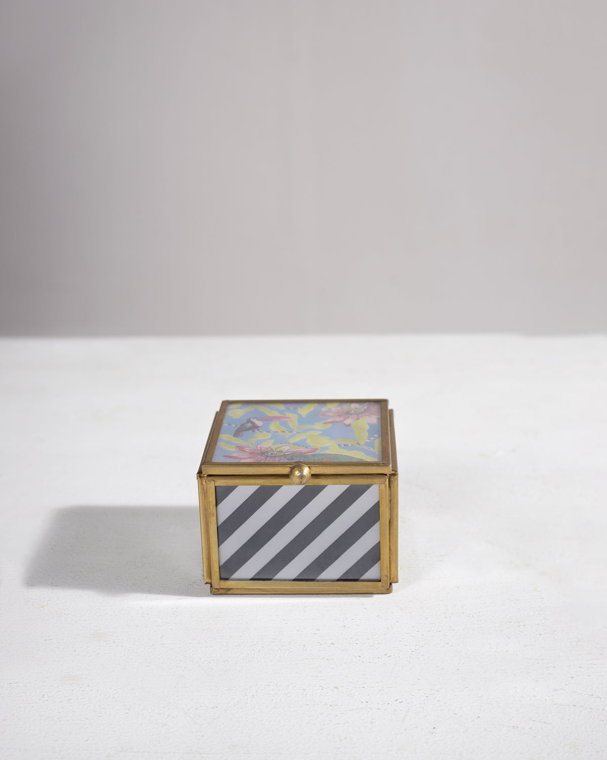 - A decorative box printed with motifs picked out from nature and our signature stipe