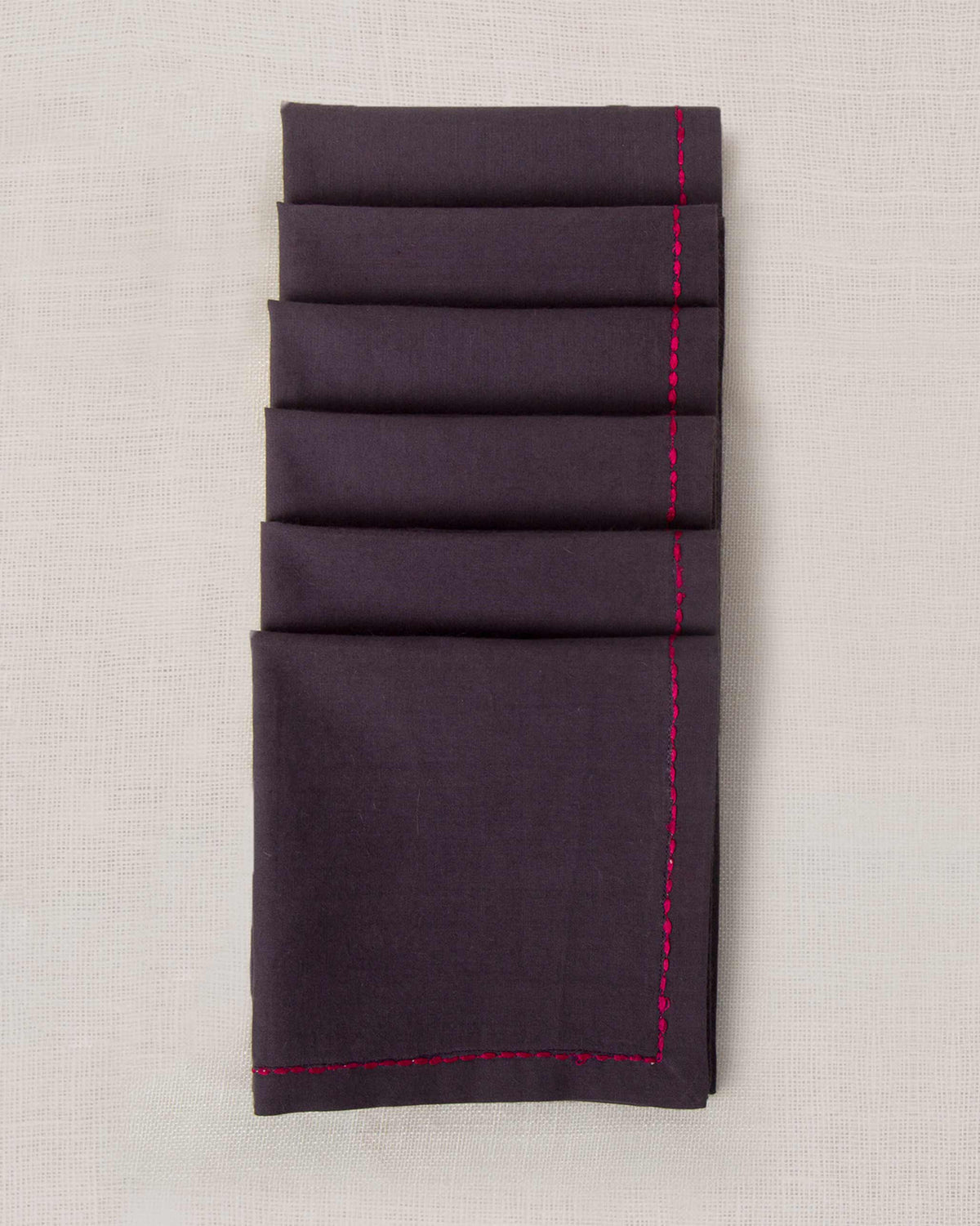 Verandah Cocktail Napkins (Set of 6) - Charcoal & Fuchsia