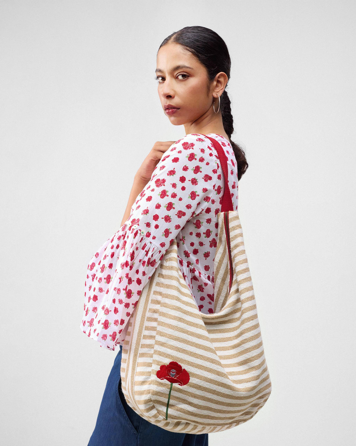 - The Wayfarer Bag is a cool shoulder bag with beige and white stripes. Perfect for when you're on the go.