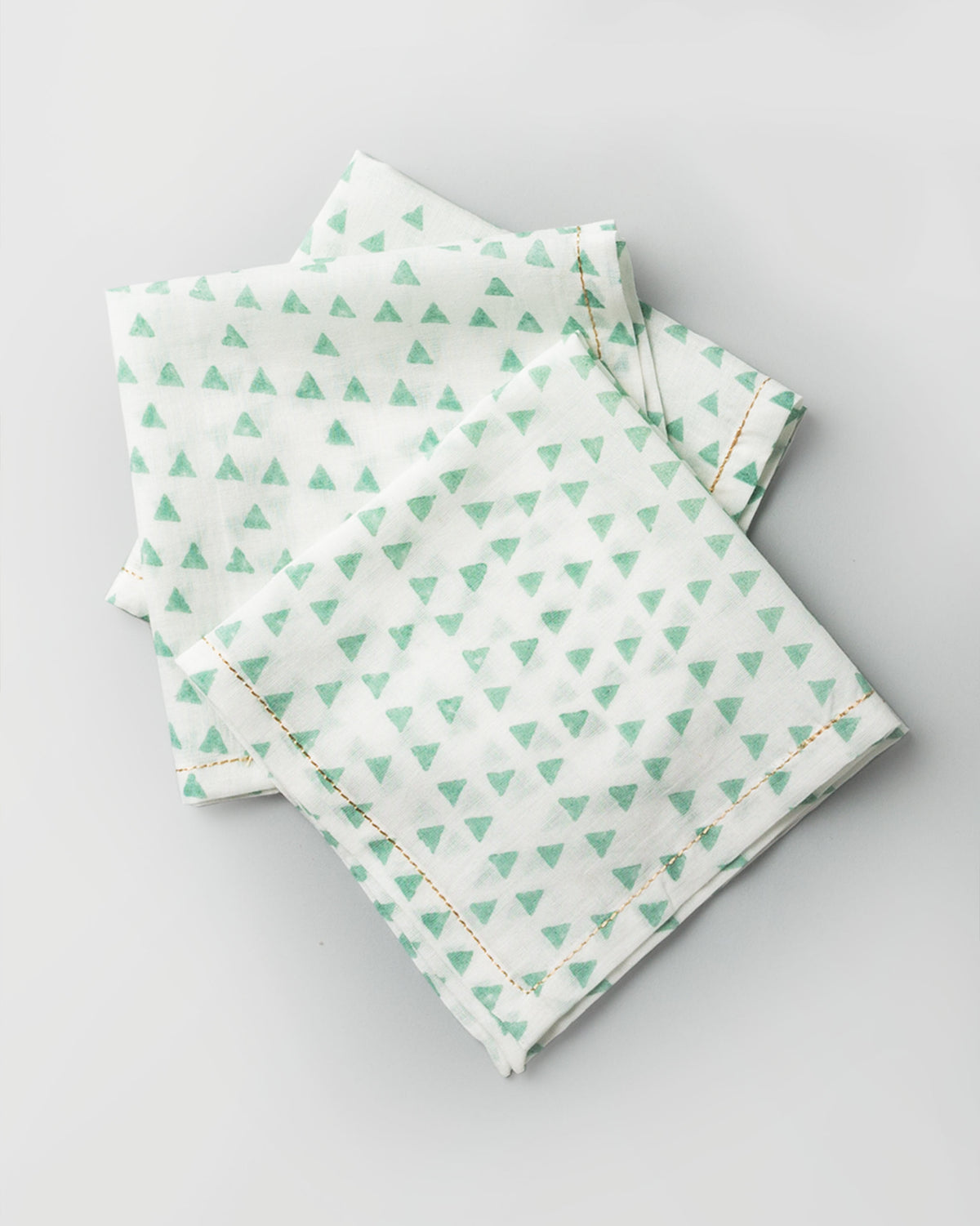 - In soft jade and ivory, this set of cotton cocktail napkins feature dull orange piping along the edges, and little jade triangles, and pair well with our recycled glass barware