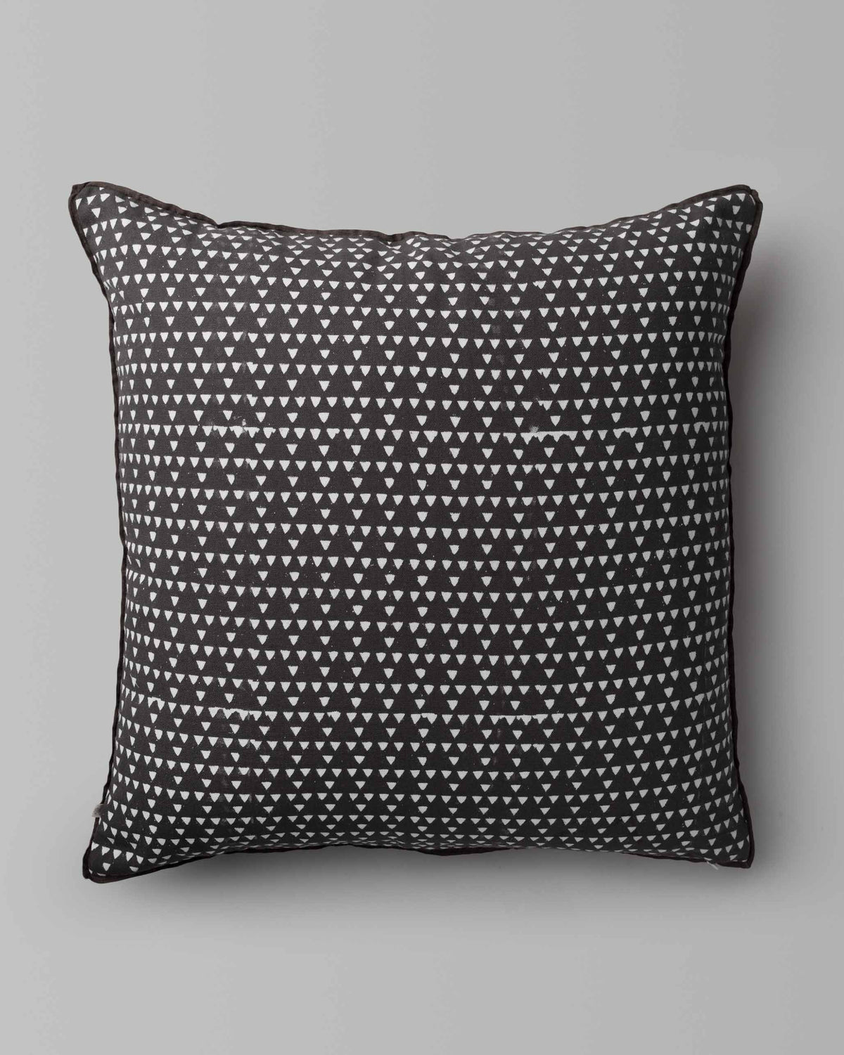 - This brown cushion features a deeper brown piping along the edges, and little white triangles, and it pairs well with our Koishi throw, and Sencha cushions
