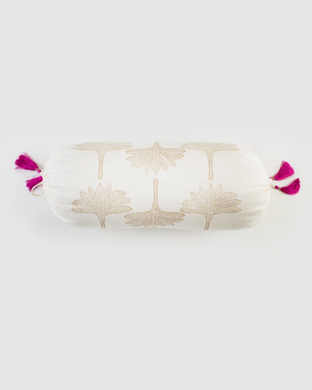 - In ivory, silk blend tussar, and with two tie openings at the side, pair this bolster with Nico cushions and your couch is ready for entertaining